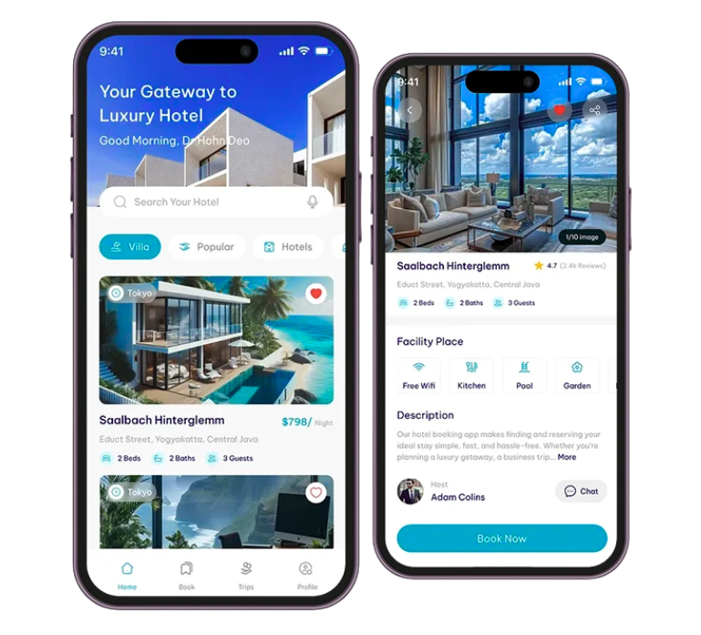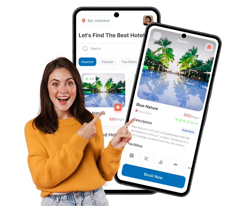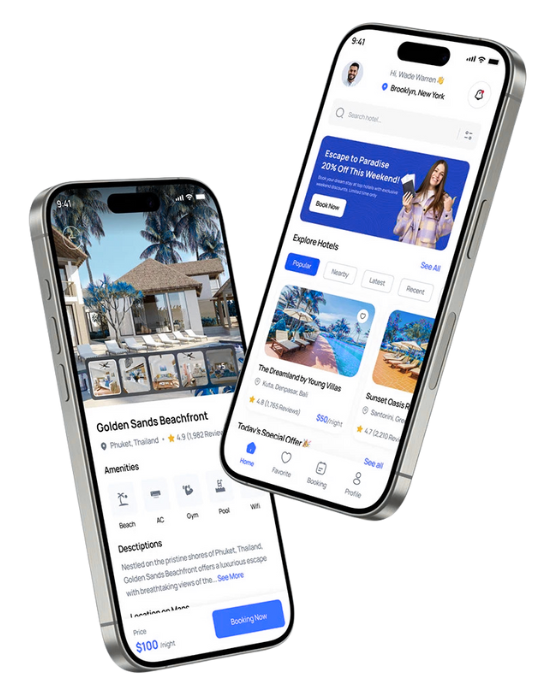 Our hotel booking mobile apps are designed to simplify room reservations, enhance user engagement, and boost business growth. With AI-driven technology and a sleek interface, our apps bring your hospitality services directly to users’ fingertips, making bookings faster, smarter, and more personalized.