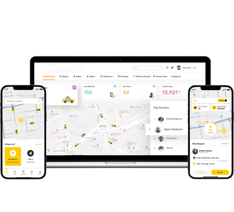 Our dispatcher panel solutions empower administrators to assign, monitor, and control rides efficiently. With real-time trip data, driver status updates, and analytics dashboards, businesses can ensure optimal fleet performance and provide faster response times to passengers.